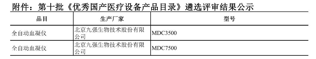 喜訊 | 九強生物凝血分析儀入選第十批《優(yōu)秀國產(chǎn)醫(yī)療設備產(chǎn)品目錄》